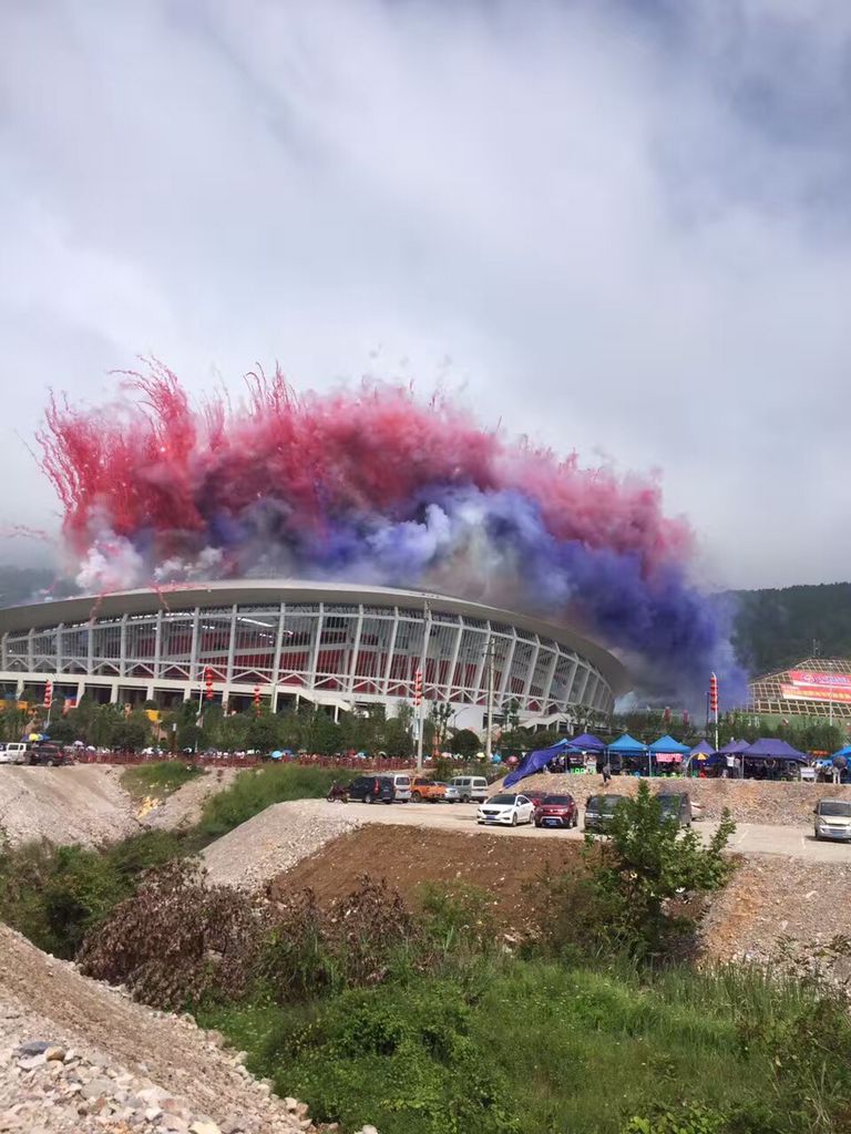 2016年8月8日,飞虎烟花燃放公司承担的黔南州成立60周年庆祝大会暨《生态之州·幸福黔南》大型主题文艺演出日景烟花燃放在黔南州全民健身活动中心举行,日景烟花燃放按照与演出导演组策划的效果、流程精心部署,烟花安装在高达50米、长200多米的黔南体育中心顶棚,烟花燃放效果构成彩虹、跑泉、交叉等多种多样的效果,为黔南州60周年大型文艺演出增添了热烈的气氛。