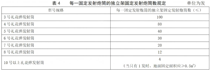 根据<大型焰火燃放安全技术规程(GB 24284-2009)>燃放要求规定,安装礼花弹发射炮筒规范如下: 1. 发射炮筒应采取双层钢管、木架等固定架固定或将发射炮筒高度的三分之一用砂土固定。 2. 发射炮筒、组合烟花底部与地面应平实接触,所接触的地面硬度一致。需倾斜发射时,筒底的空隙应用木块等硬质材料填实,发射点至倾斜方向观众及周围物的距离应大于对应礼花弹(8号以下)发射高度的1.5倍;8号以上(含8号)不宜倾斜发射。 3. 发射炮筒固定示图参见附录B。 固定发射炮筒应符合以下规定: a) 发射炮筒安装应稳固、松紧适度,保证燃放过程当中不倒筒、不散架; b) 7号、8号发射炮筒应按内部距离单独固定; c) 10号以上发射炮筒应单个独立固定; d) 每一固定发射炮筒的独立架固定发射炮筒数应符合表4要求。